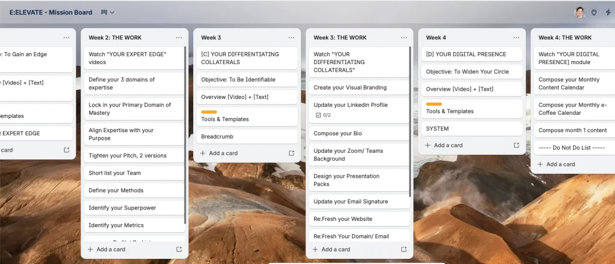 Executive Elevate follows a Modular Framework, meaning there are 20+ concepts and practices to prepare and get you to the desired outcome. You won’t need all of them.